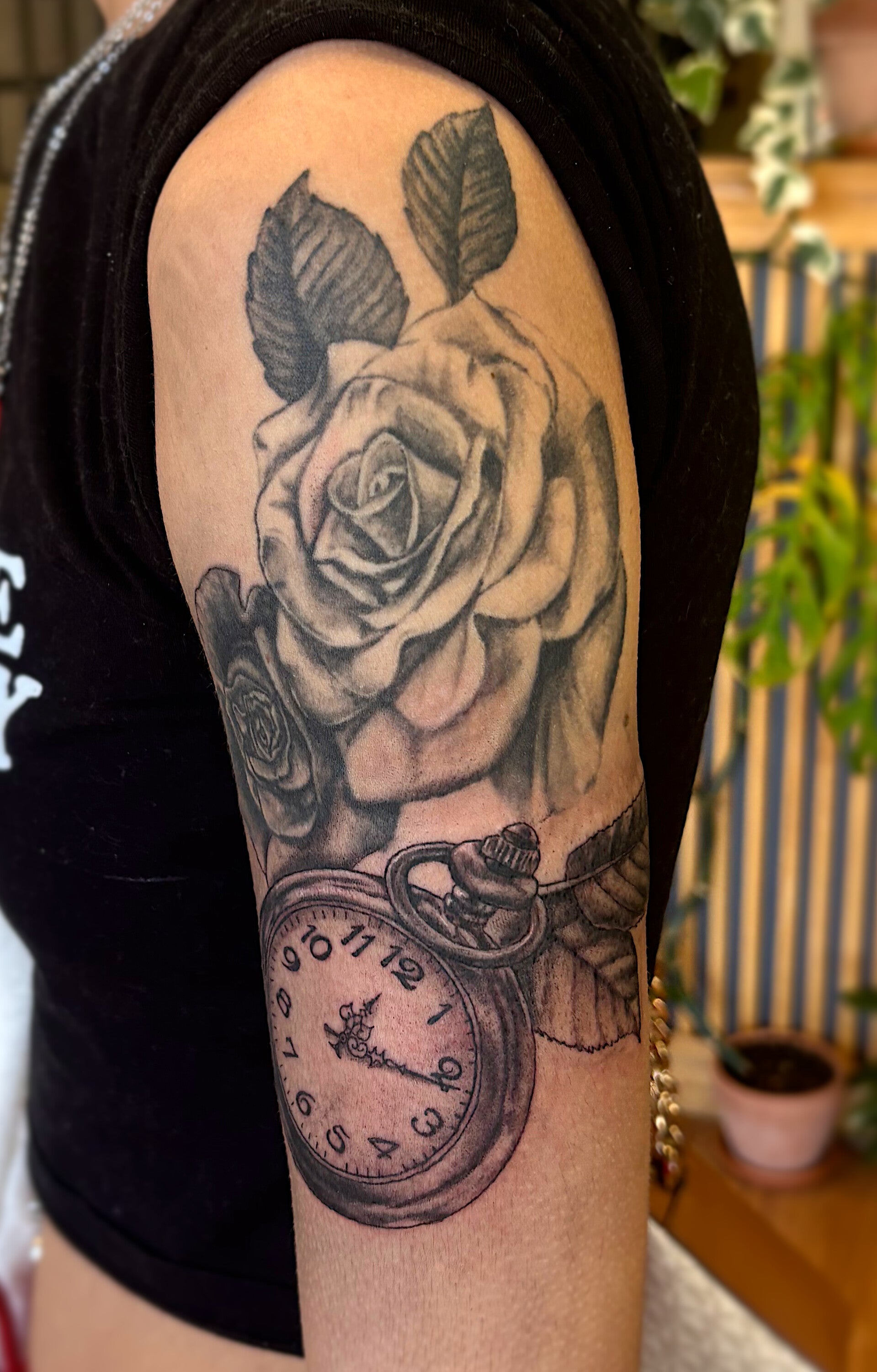 Amber is our resident artist-slash-musician, and yes—she will make your tattoo sing like and indie-pop princess. She blends visual rhythm and lyrical detail into every piece. Basically, your skin’s about to get its own soundtrack.
