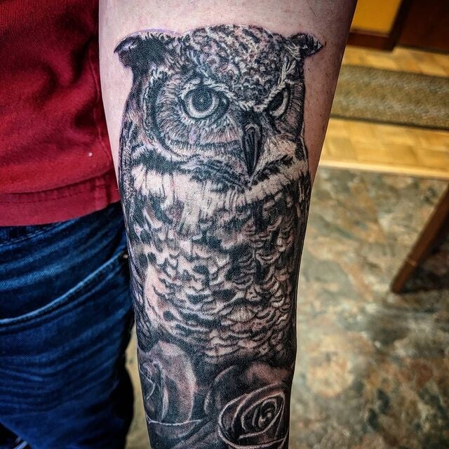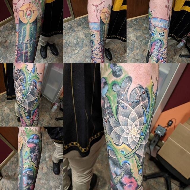 No one’s quite sure how long Colin’s been tattooing—some say 25 years, others say time works differently around him. Legend has it he was trained by an ancient forest spirit, and honestly, we’re not ruling it out. These days, Colin is our resident shop hermit: quiet, kind, talented, and probably sketching something strange in a hidden corner.